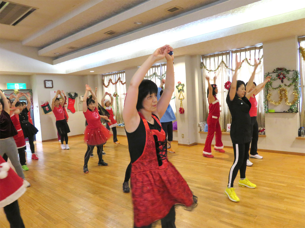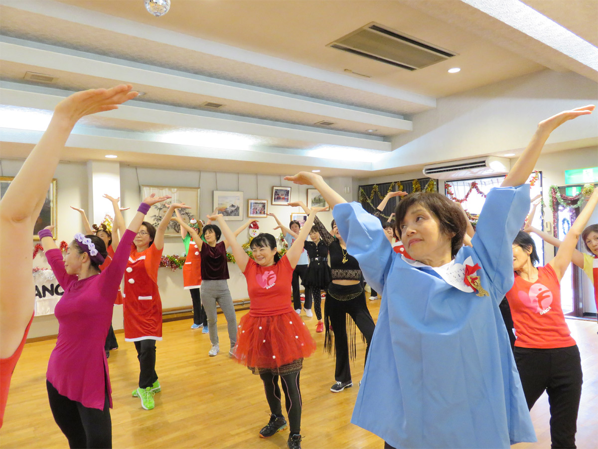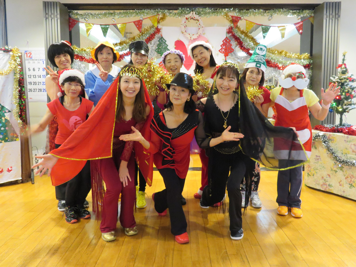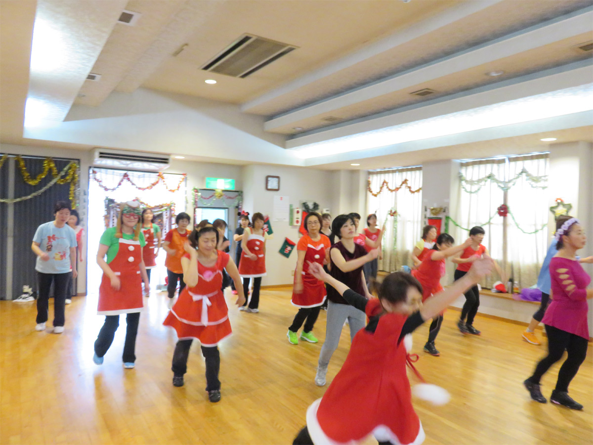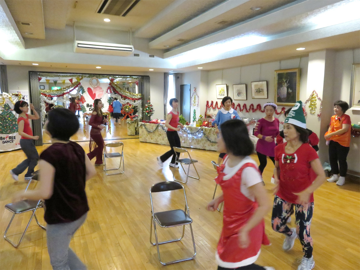 アラビア衣装のツインルックで姉妹の様な?母娘、クールにキメタポリスガール?、可愛いトナカイさん、黄色い帽子が良く似合っていた園児さん、沢山のサンタガール・・・等々 に扮した皆さんと向かい合って個性豊かなそれぞれのコスチュームを楽しみながらレッスンさせて頂きました。